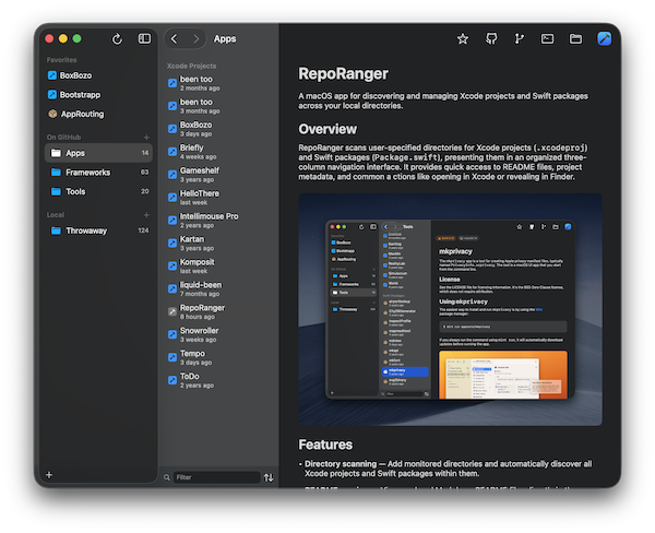 An app for keeping track of all the Xcode projects and Swift packages on your computer.